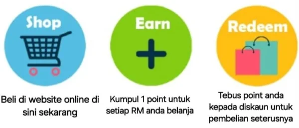Lagi banyak anda akan dapat point dan boleh tebus kepada diskaun untuk pembelian seterusnya.